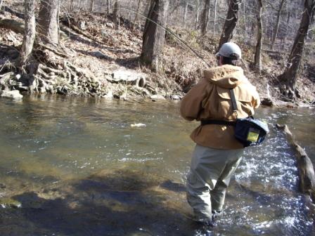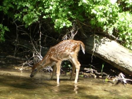 Delayed Harvest and Artificial Lures Area (DHALA) A fawn taking a drink Suspended Trout Wall Hole Log Hole Bottom end of DHALA at Dowlin Forge bridge Hooked up with a Palomino Gotcha!!